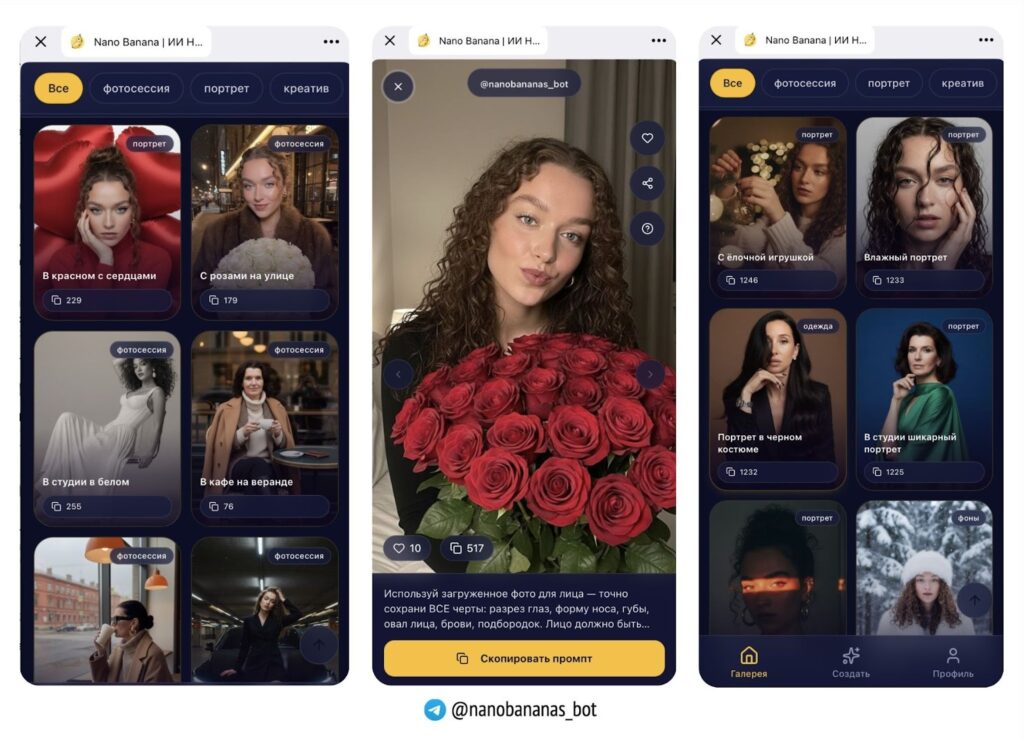 Все промты работают в @nanobananas_bot. Используйте как шаблоны или копируйте полностью.