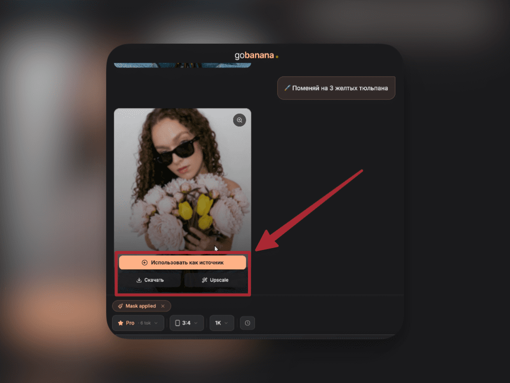 Если выбрали Nano Banana 2 или PRO — можно дополнительно указать качество: 1K, 2K или 4K.