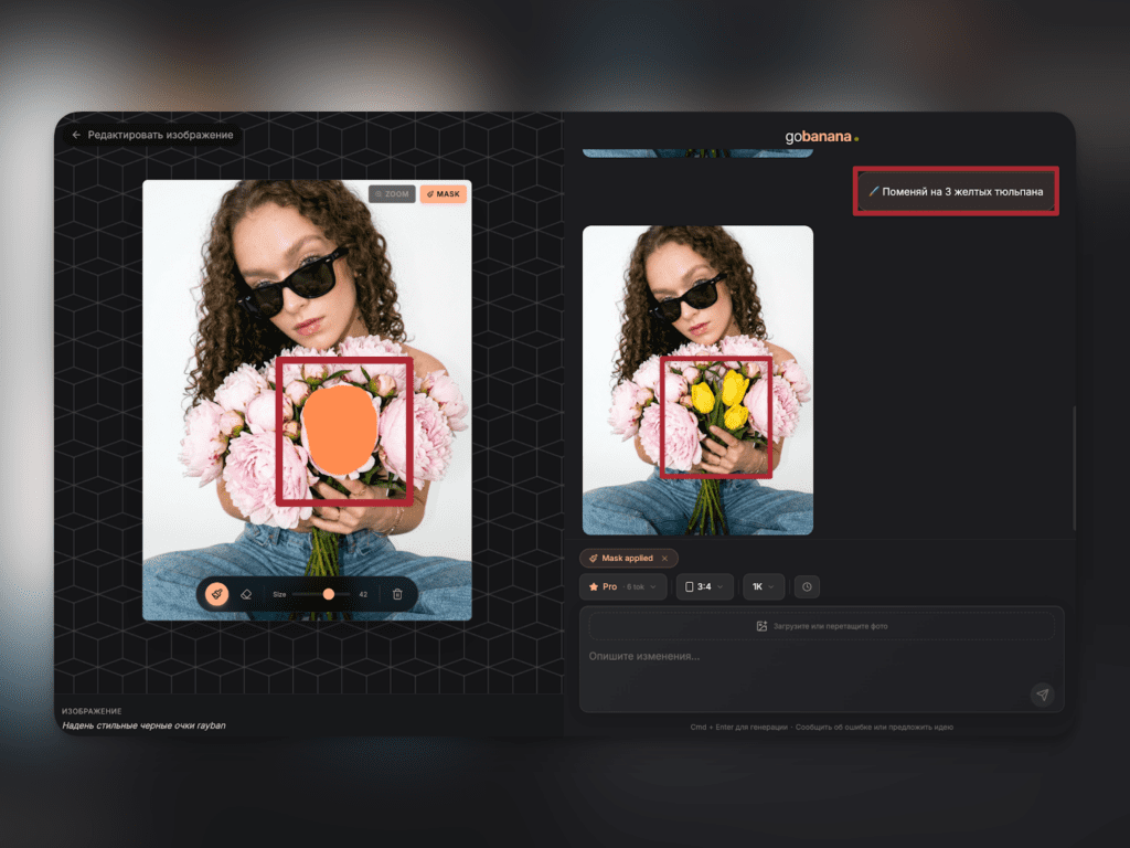 ⚠️ Кисть работает только с моделью Nano Banana 2.