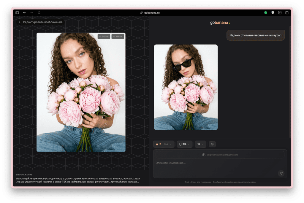 Nano Banana PRO ⭐ — 6 токенов Максимальное качество. Поддерживает 2K и 4K. Лучше всего сохраняет черты лица, хорошо работает с текстом на изображениях. Только в этой модели доступна кисть для точечного редактирования.