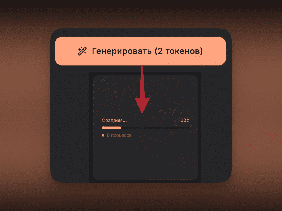 Всё готово — нажимайте большую оранжевую кнопку. На ней написано, сколько токенов спишется за эту генерацию, например «Генерировать (1 токен)».