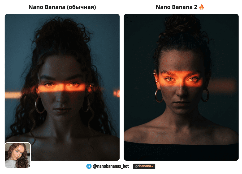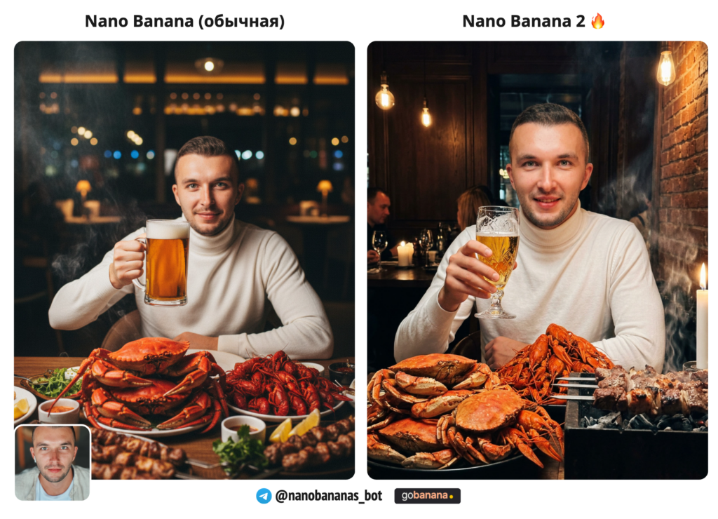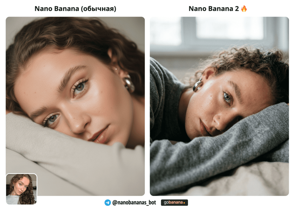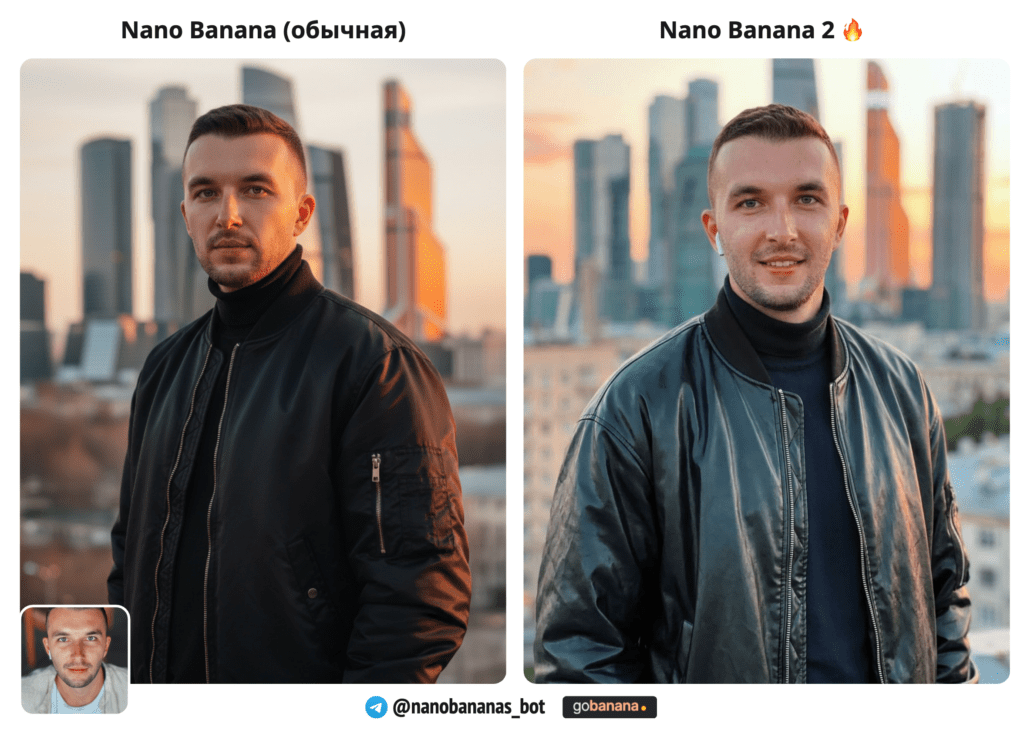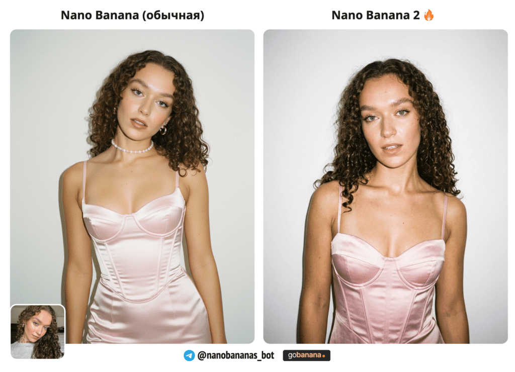 Чтобы разница была понятна не на словах, а на картинках — ниже реальные примеры из нашей галереи. Одни и те же промпты, разные модели. Всё это можно повторить самому: и в боте, и на GoBanana.ru.