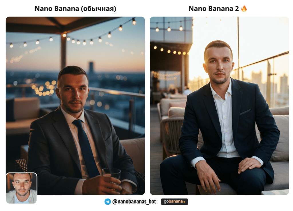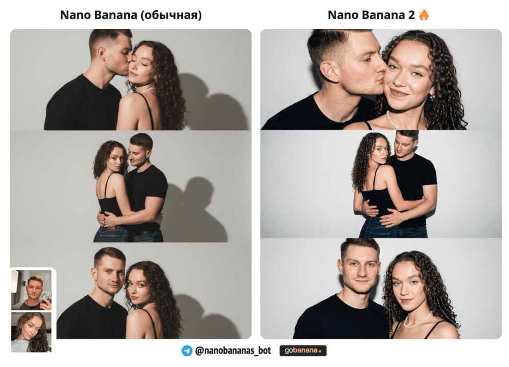 Про объединение нескольких фото и сохранение лица в разных сценах читай подробнее в статье: Как объединять фото и сохранять лица в Nano Banana: 10 лайфхаков.